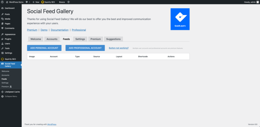 - In the WordPress dashboard, look for the new plugin menu entry such as Instagram Feed, Social Photo Feed, or Social Feeds and click it.