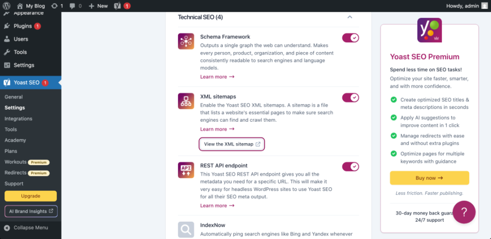 - Go to Yoast SEO > Settings.